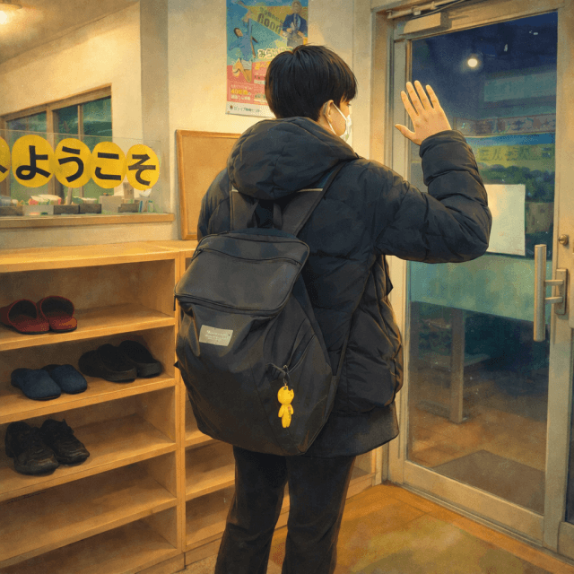 終わった高3生の帰り際の後ろ姿。今日まで自習にも来て毎日本当によく頑張っていました。どうかこの春に桜が咲きますように。