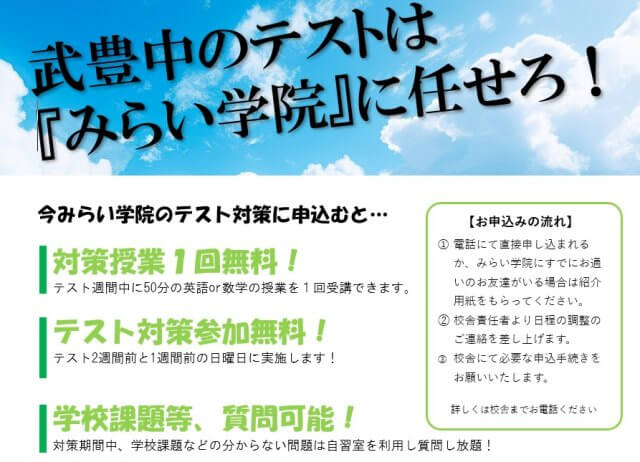 みらい学院知多武豊校では武豊中の1学期中間テストに備え、